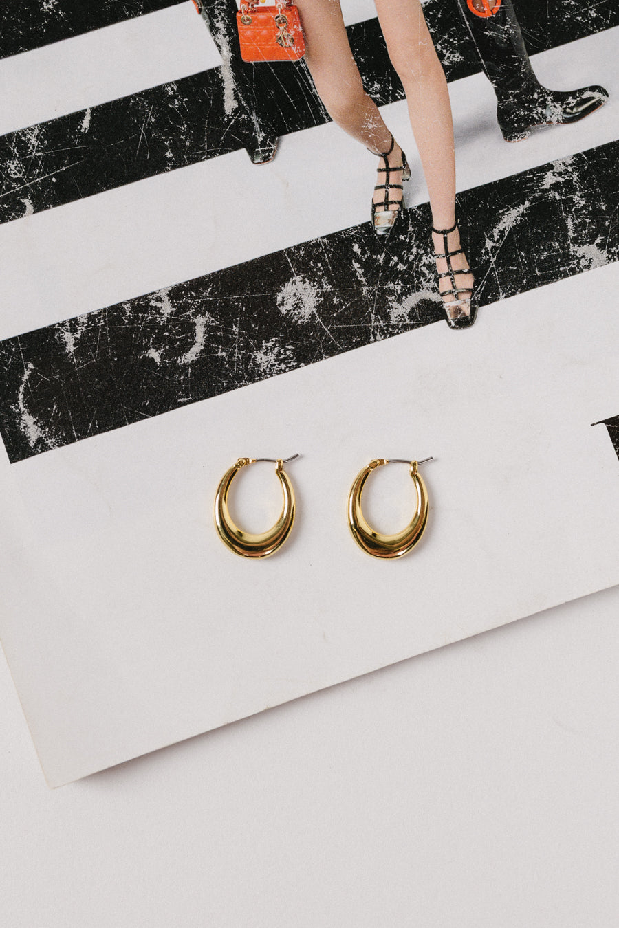 Details Event wear earringsRhinestone and gold oval shaped postsAll earrings are considered final saleMeasures: .75 inches All sale items are considered final sale.